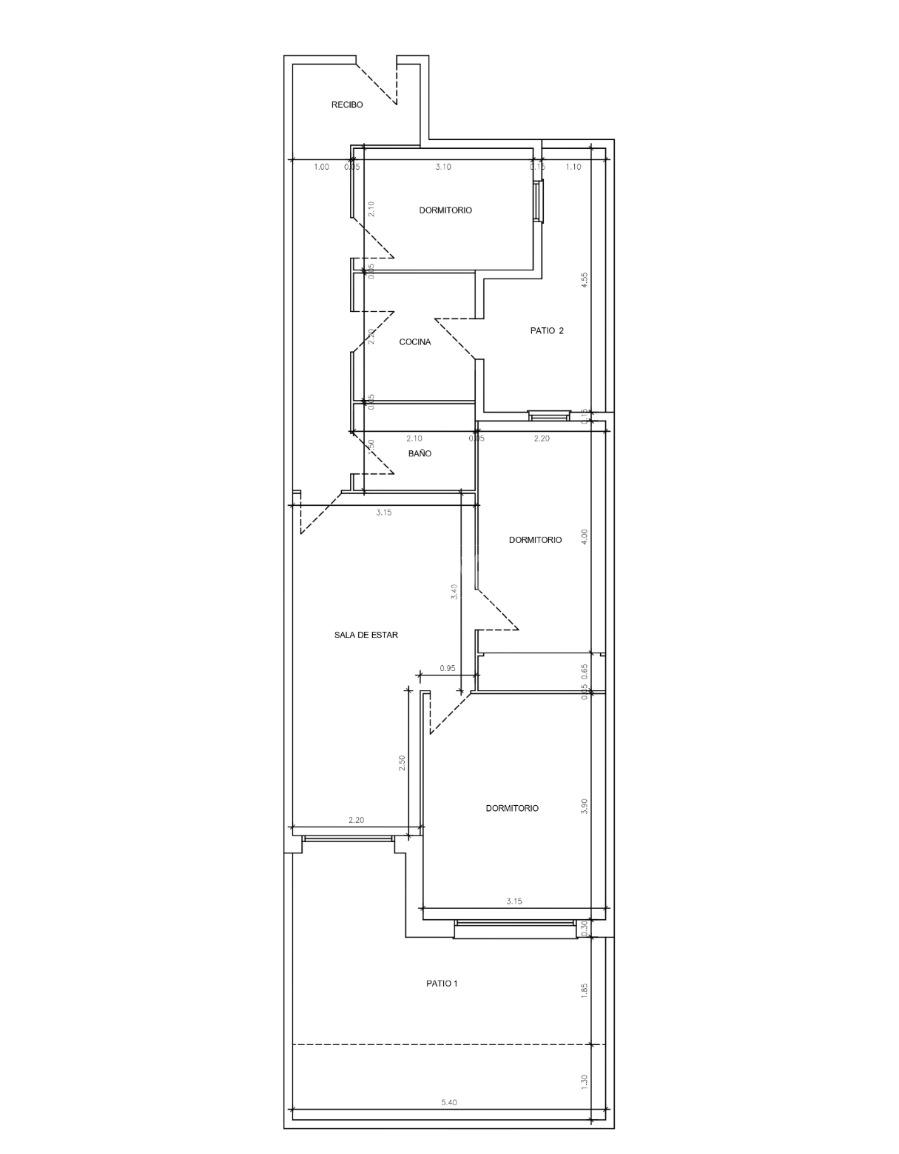3 habitaciones: 1 doble exterior + 2 individuales interiores.